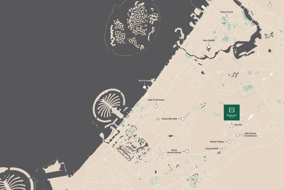 Barari Palace enjoys a well-connected address. Residents stay close to key lifestyle and business hubs.
